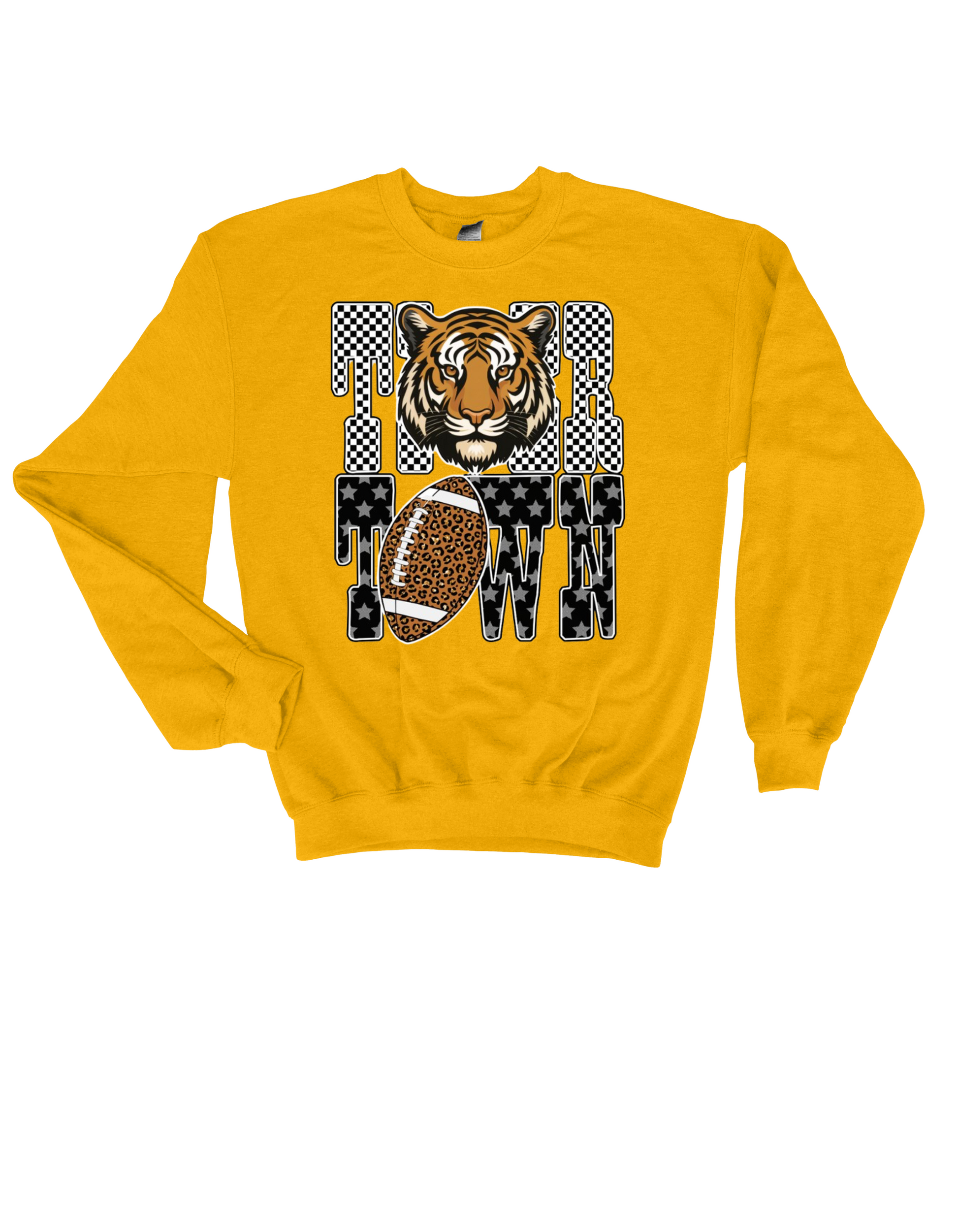 Show your bold spirit with our Tiger Town Checkered Star t-shirt. Be a little edgy with this fun spirit shirt design that is a perfect choice for the school hallways or under the Friday Night Lights.